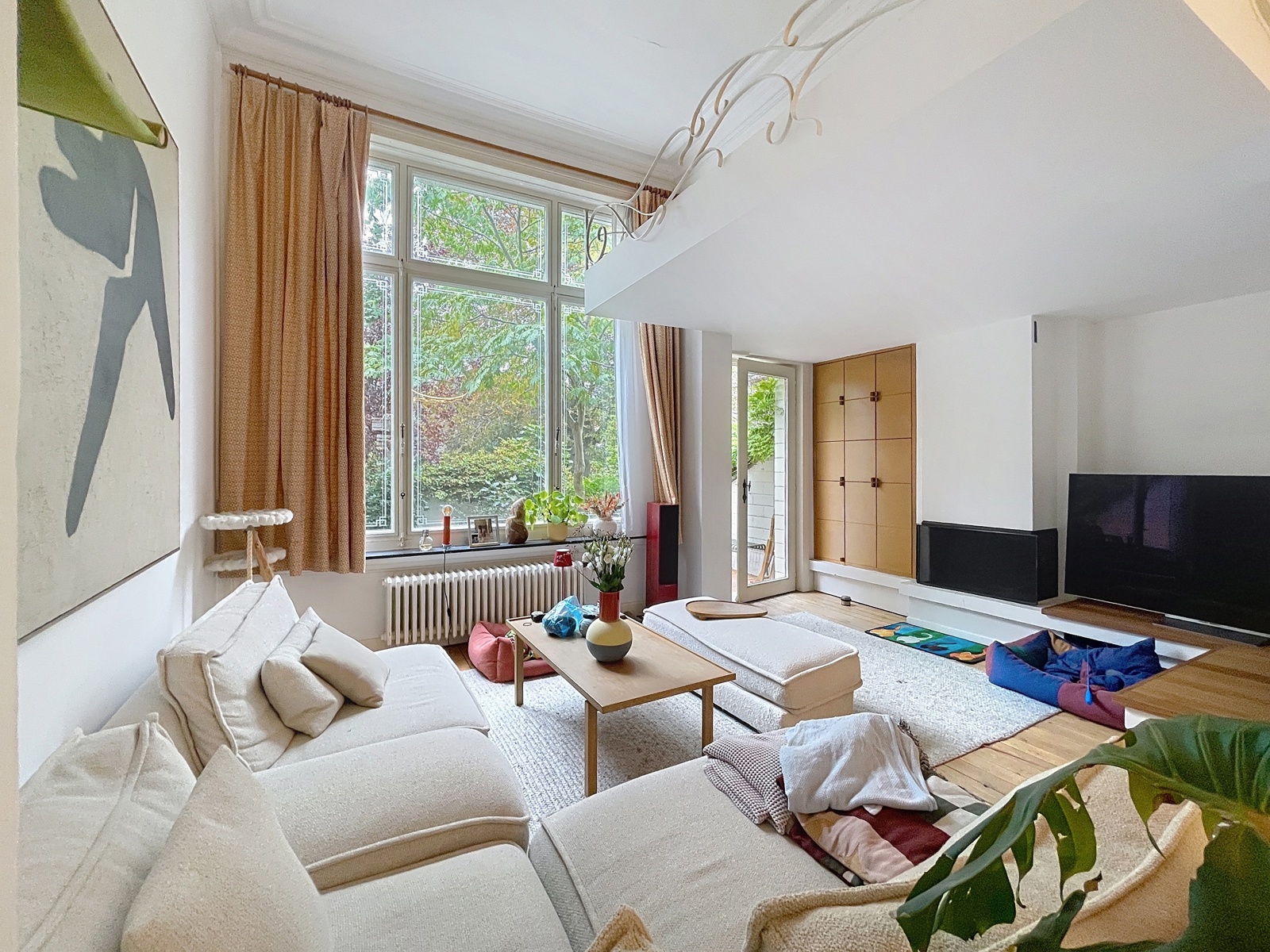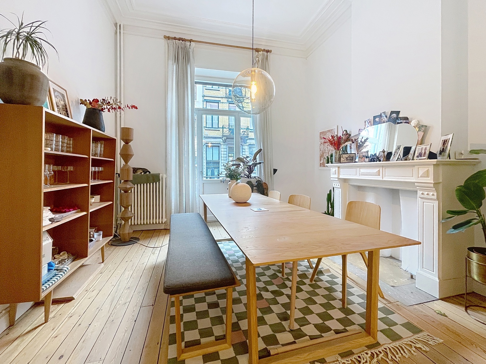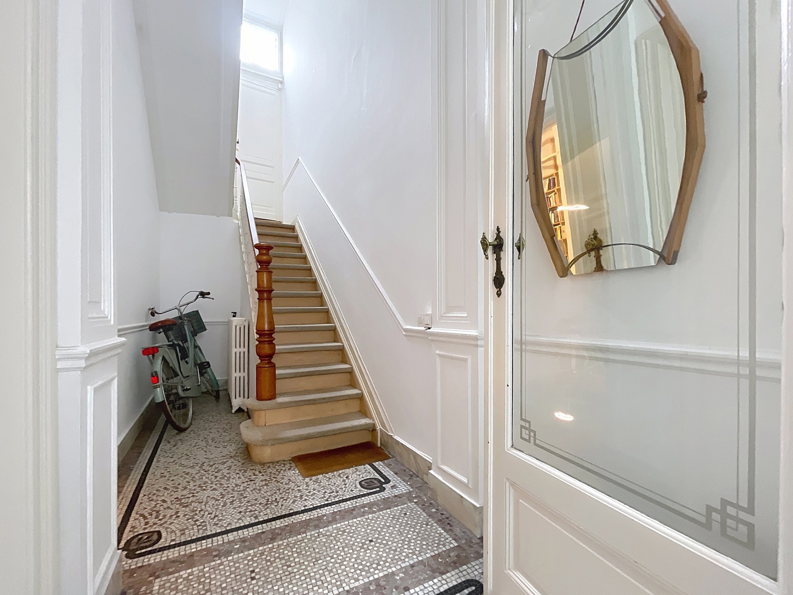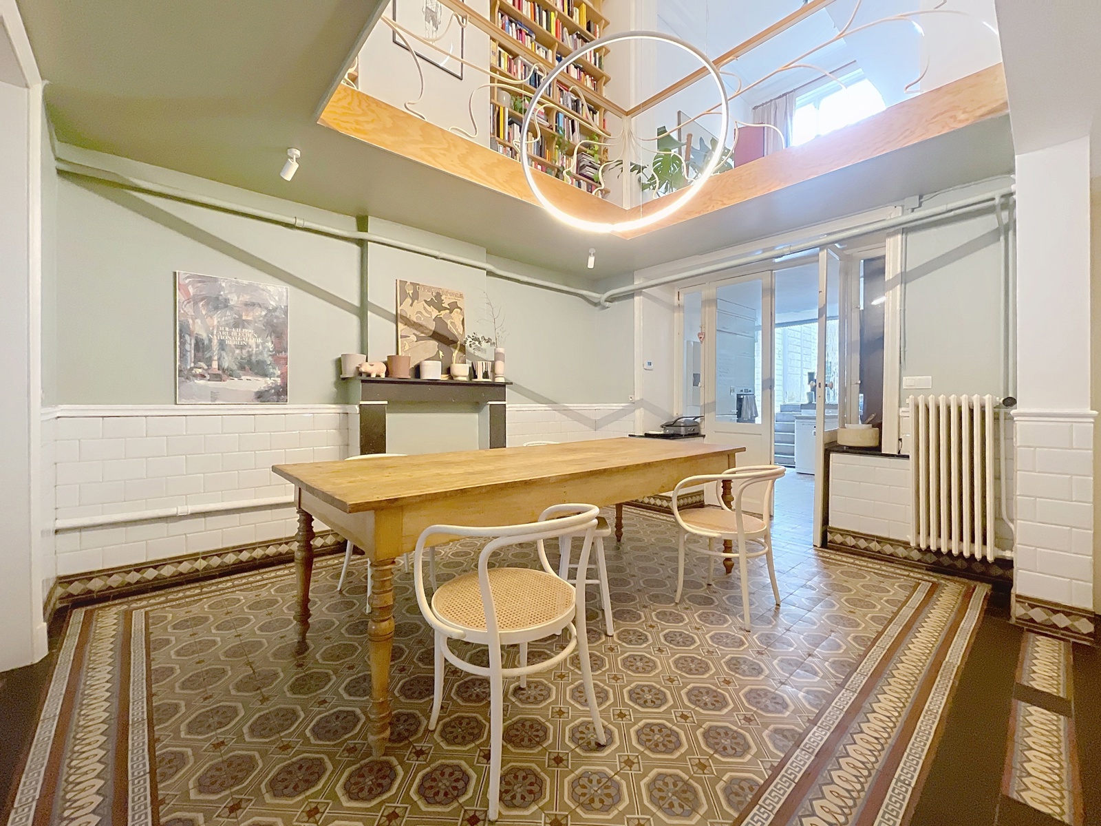 Contact et infos Anne +32 476 89 60 46 Entre les places du Châtelain et Brugmann, maison unifamiliale (300m2) lumineuse comprenant des pièces de réception en duplex : un salon avec feu ouvert, un bureau et un espace bibliothèque plongeant sur une grande salle à manger + coin tv ou family room, une cuisine super équipée, 4 chambres dont la master avec salle de bains et dressing, 1 salle de bains supplémentaire, buanderie, wc séparé. Joli jardin ouest. Beaucoup de charme et idéalement situé! A visiter sans tarder.