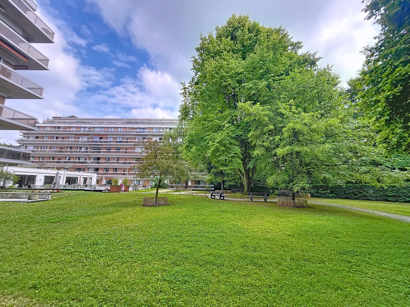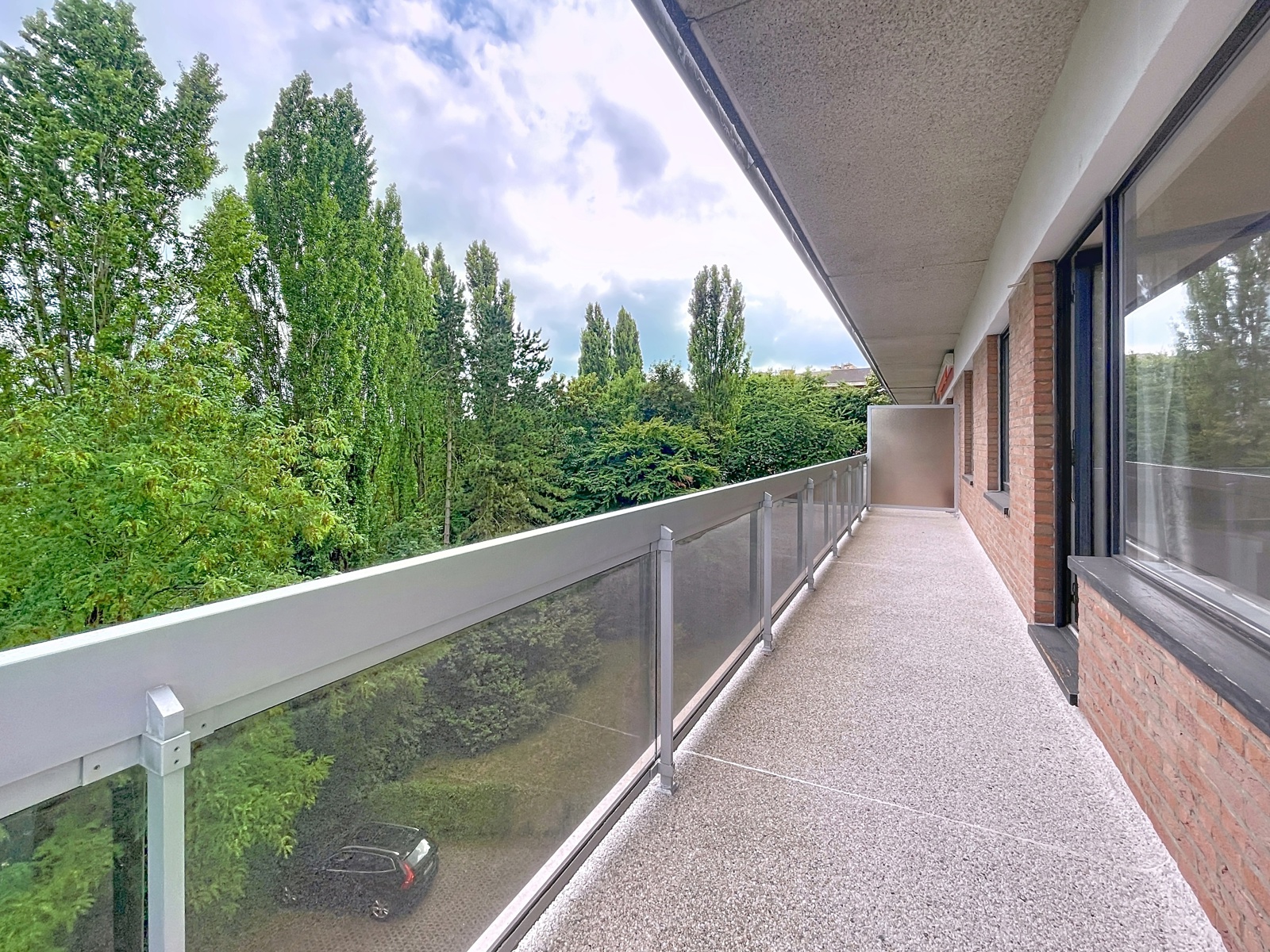 Contact +32 476 89 6046 A la limite de Boitsfort, appartement faisant partie de l'élégante Résidence Parc d'Italie (en résidence service), proposant ± 75 m² au 3ème étage , avec un hall d'entrée avec vestiaire et kitchinette, un lumineux living avec parquet en chêne (± 28m²) donnant sur une terrasse couverte (12m2), 2 chambres (± 12m² ; ± 10m²), une salle de douche et une toilette séparée. L'appartement dispose également d'une cave (n°64). Charges : 430€ (provision pour l'entretien des communs, le chauffage et l'eau chaude). PEB : D-